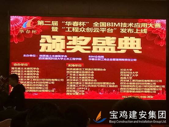 2017年12月14日,在西安·華山國際酒店舉行的第二屆“華春杯”全國BIM技術(shù)應(yīng)用大賽終審答辯落下帷幕。本次比賽,施工組只產(chǎn)生兩個一等獎,分別是中建鋼結(jié)構(gòu)和中鐵十七局,由公司發(fā)布的《太白縣城市綜合體項目BIM作品》榮獲大賽二等獎的優(yōu)異成績,該項目的申報是公司技術(shù)部、安裝公司、第六項目部、路橋公司等部門2個月共同努力下完成的。