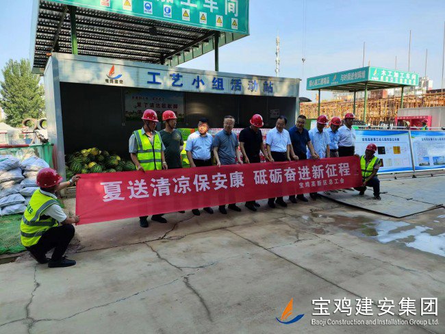 7月18日上午,寶雞高新區(qū)管委會(huì)黨工委委員、管委會(huì)副主任楊海翔,高新區(qū)總工會(huì)主席李廣強(qiáng),區(qū)教育系統(tǒng)黨委書記、教育體育局局長(zhǎng)唐宏,副局長(zhǎng)劉輝等一行領(lǐng)導(dǎo),前往建安集團(tuán)承建的寶雞高新第三幼兒園建設(shè)項(xiàng)目工地,走訪慰問一線員工,開展“夏送清涼”活動(dòng)。