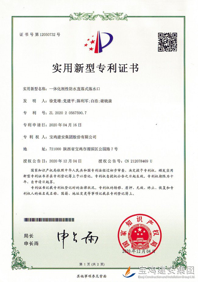 一體化剛性防水直落式落水口實用新型專利
